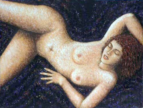 Reclining Nude - Acrylic on board. 36 x 47cms