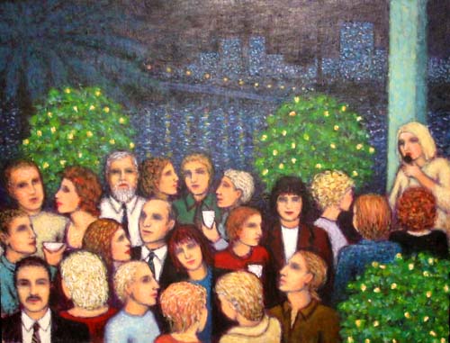 Singles Night at Spargos - Acrylic on board. 47 x 52cms